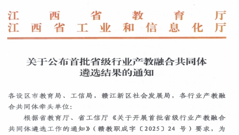 近日,江西省教育厅、江西省工业和信息化厅联合公布首批省级行业产教融合共同体遴选结果,全省仅有5个首批省级行业产教融合共同体及2个培育单位。在此背景下,我校牵头的智能硬件行业产教融合共同体和现代文旅行业产教融合共同体成功入选首批省级名单,这是我校在深化产教融合、推进校企协同育人方面取得的又一重要成果。